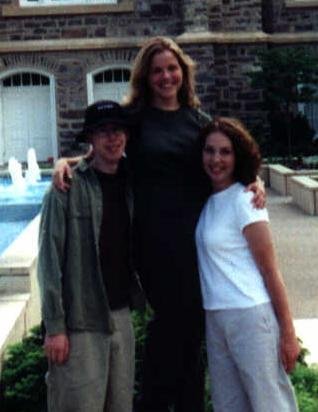 A picture of SnoTurtle, Charity, and Katie-Kay in front of Logan Temple taken June 1999